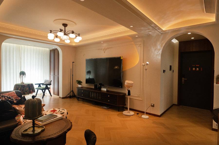 个人介绍2019年毕业于河北科技学院环境设计系室内方向始终秉持“功能与美学共生”的设计理念擅长中式风格设计源于生活高于生活项目介绍本方案的设计理念秉承“形式追随功能”,以法式优雅为核心,融合古典浪漫与全屋智能,营造精致而不失温度的居家氛围。业主是工薪阶层的三口之家。屋内整体采用暖白色为基底,通过木纹砖、实木烤漆门、柜、踢脚线(均选取环保等级为ENF级的板材)构成一个温馨舒适的空间