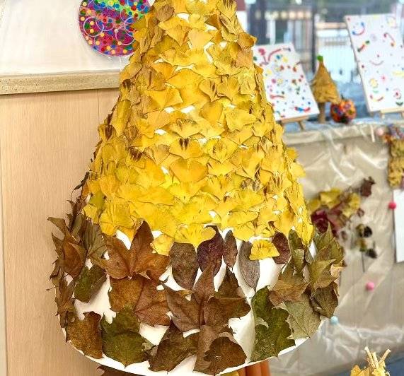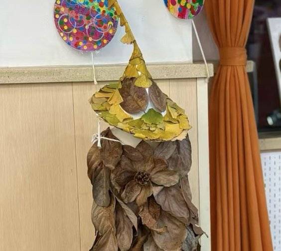 作品名称:落叶新生·秋树童话创作理念:拾落叶拼贴成树,让自然废弃物重焕生机,诉说环保之美