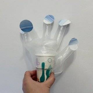 旧物改造《小鱼吐泡泡》:这件作品以废旧纸杯为“鱼身”、塑料手套作“鱼鳍”、广告纸剪“泡泡”、吸管传“泡泡”,巧妙组合成童趣十足的小鱼吐泡泡玩具。创作以“废旧材料大变身”为理念,让原本闲置的纸杯、手套等在创意巧思下成为充满互动性的玩具,既传递“环保即创意,旧物可新生”的理念,又在动手制作中激发对生活废弃物价值的探索欲,让环保意识在趣味创作里悄然生根。