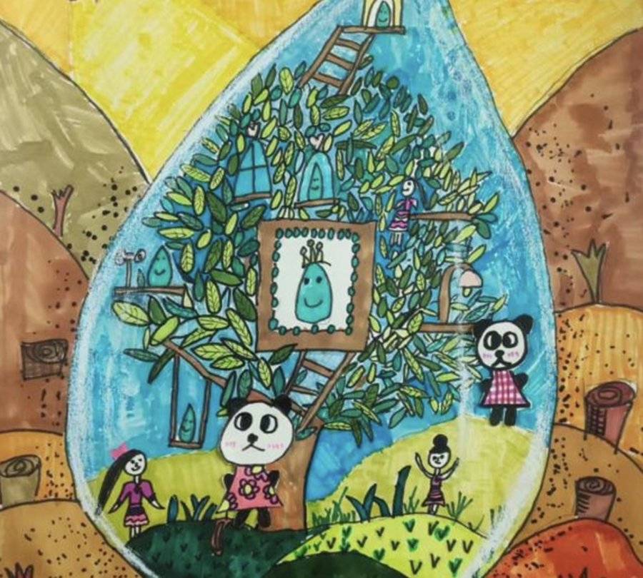 作品名:童心护地球小手种希望作者:高新区石羊第十幼儿园中四班易夏恩设计理念:以童心作笔,把地球想象成亲昵的玩伴;小手栽下树苗,让生命的 希望随新枝舒展。与地球拥抱,与自然牵手,做彼此温柔相伴的朋友,让生机 在时光里轻轻蔓延。