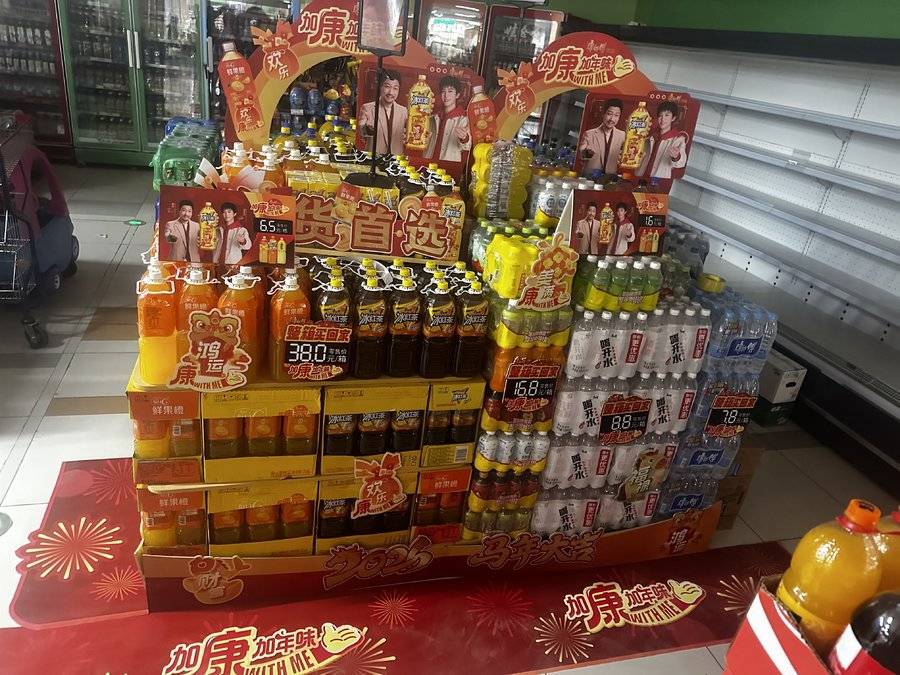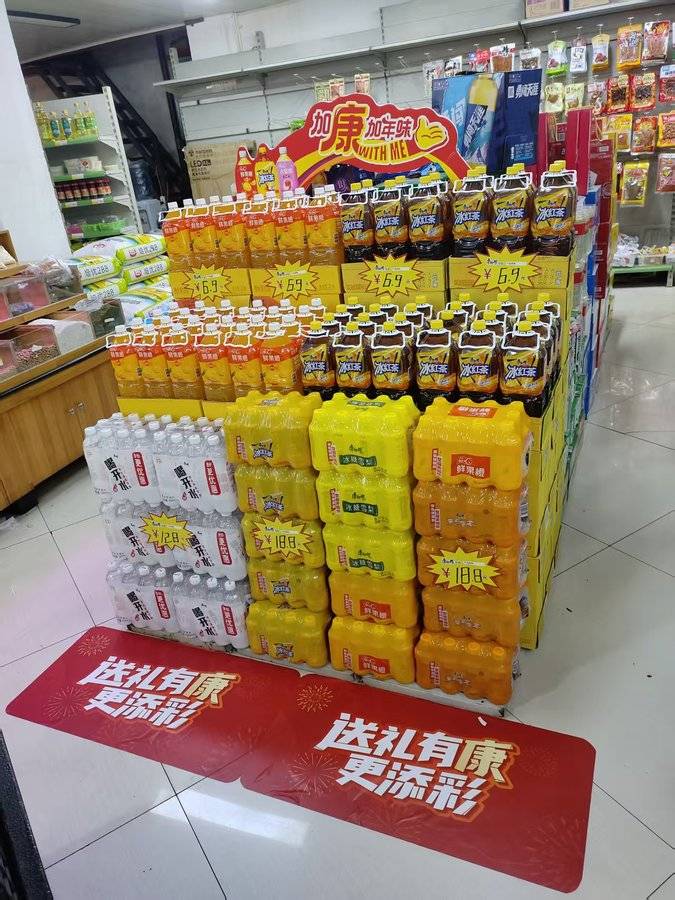 ①陈列品项:居家规格(2L/330/TP/CAN)及双水,多入装/整箱装为主;