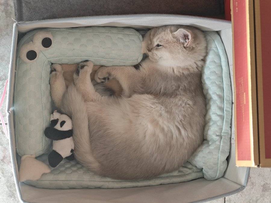 慵懒的猫咪与熊猫玩偶共眠,温馨的画面捕捉了宁静午后的甜蜜梦境,传递出家的温暖与舒适。