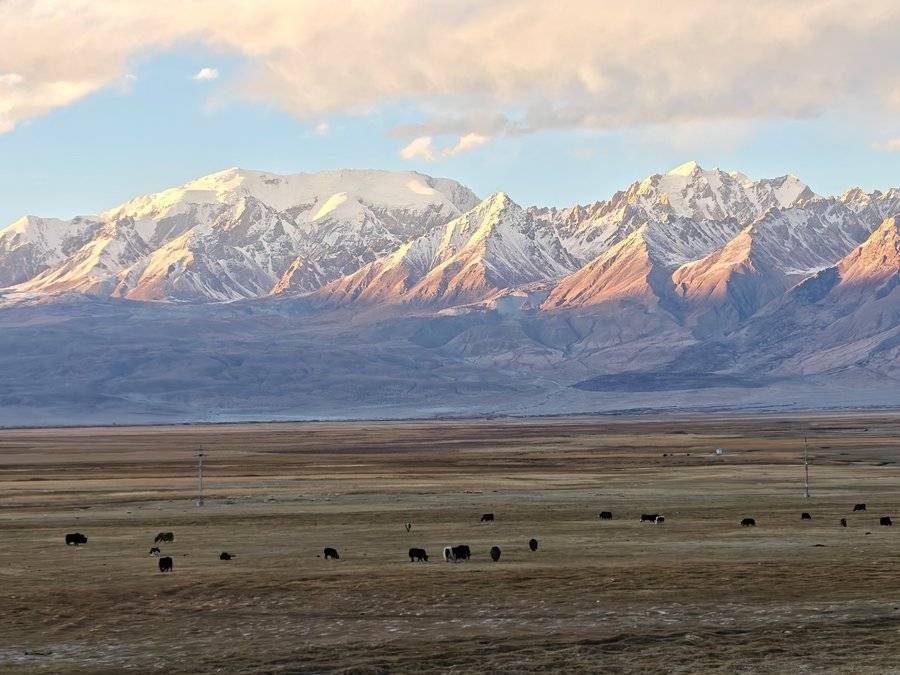在喀什塔合曼湿地,雪山与草原共谱一曲天地交响。巍峨的雪山群峰在日光下泛着金辉,塔合曼湿地的草原上,这里是帕米尔高原的生态秘境。