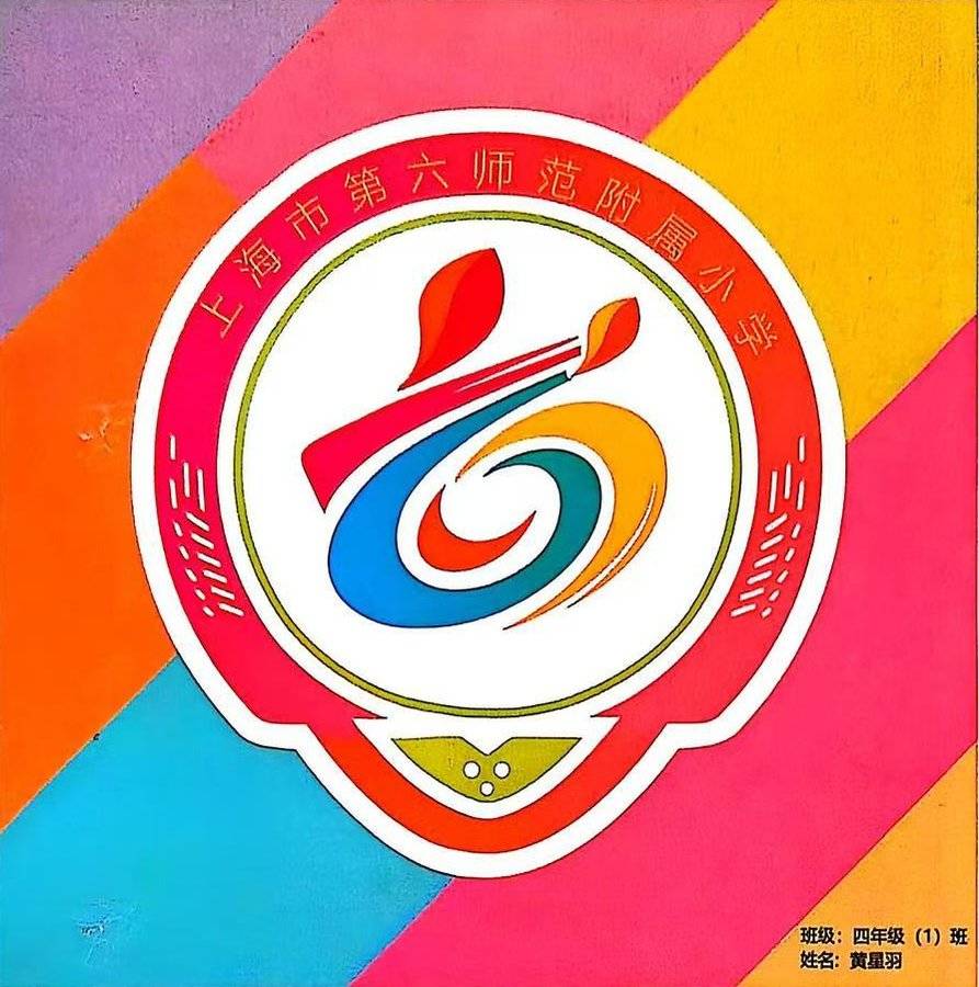 设计理念 本节徽的核心创意,在于将“上海市第六师范学校附属小学”的标识性数字“6”,转化为一个学生手牵手组成的、充满活力与温情的视觉叙事。