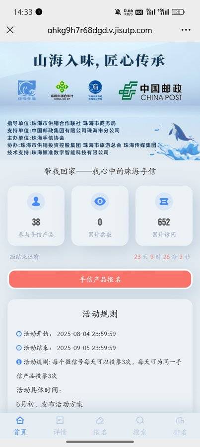 为弘扬珠海特色文化,推广具有珠海特色的手信产品,提升“珠海手信”品牌影响力,珠海手信协会于2025年6月-10月举办主题为“带我回家——我心中的珠海手信”的2025年珠海手信征集遴选活动,通过线上投票与线下活动相结合,遴选出最具代表性的珠海手信产品并由珠海手信协会对入围产品分级颁发商标授权书。入围商品可以入驻珠海供销体系、全国供销体系销售渠道。