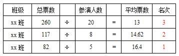 因各班级人数不同,投票截止后,按照各班级得票的平均票数计算。