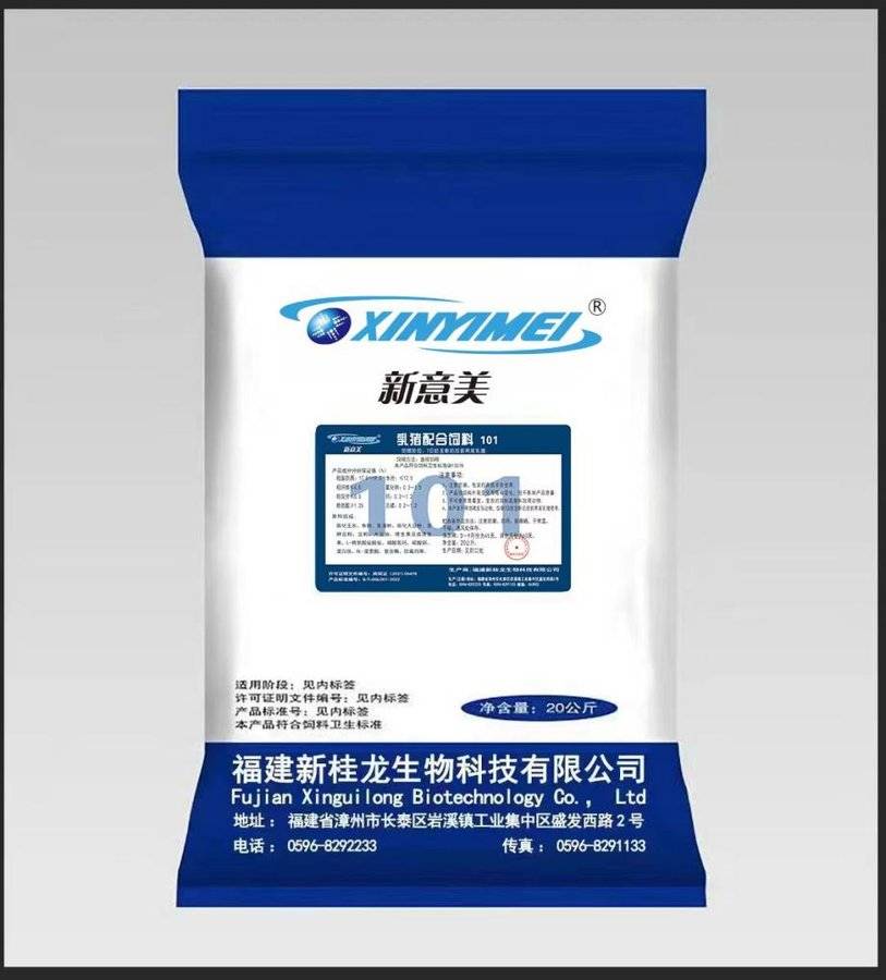 1.产品介绍:产品名称:乳猪配合饲料101(粉+粒)产品所属种类:全价配合饲料 2.产品研发理念/ 思路、产品特点与饲喂方法等:产品研发理念:乳猪营养发展近年来有大幅度的改革变化,主要着眼点在于免疫力及消化率的提高。福建新桂龙经过多年实践,推出了最新营养理念并经多年实践验证,终于推出最先进、最符合目前市场需要的教槽料;富含适口性因子及超低抗原,提高采食有效调