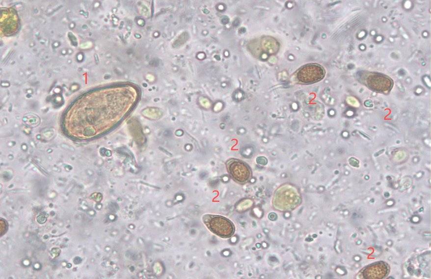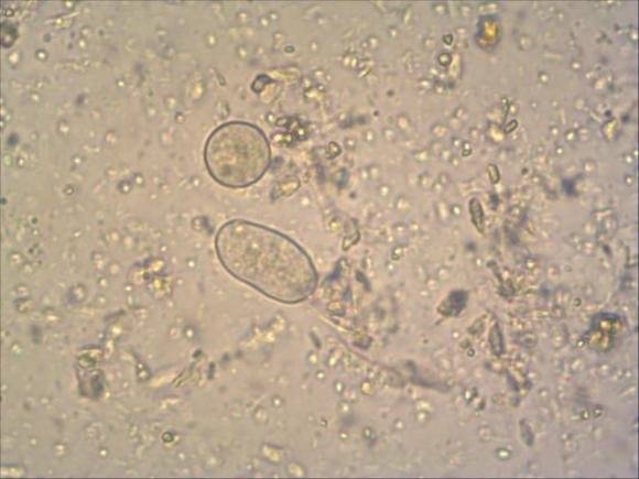 26号 S26 粪便中的“透明椭圆体”—钩虫卵